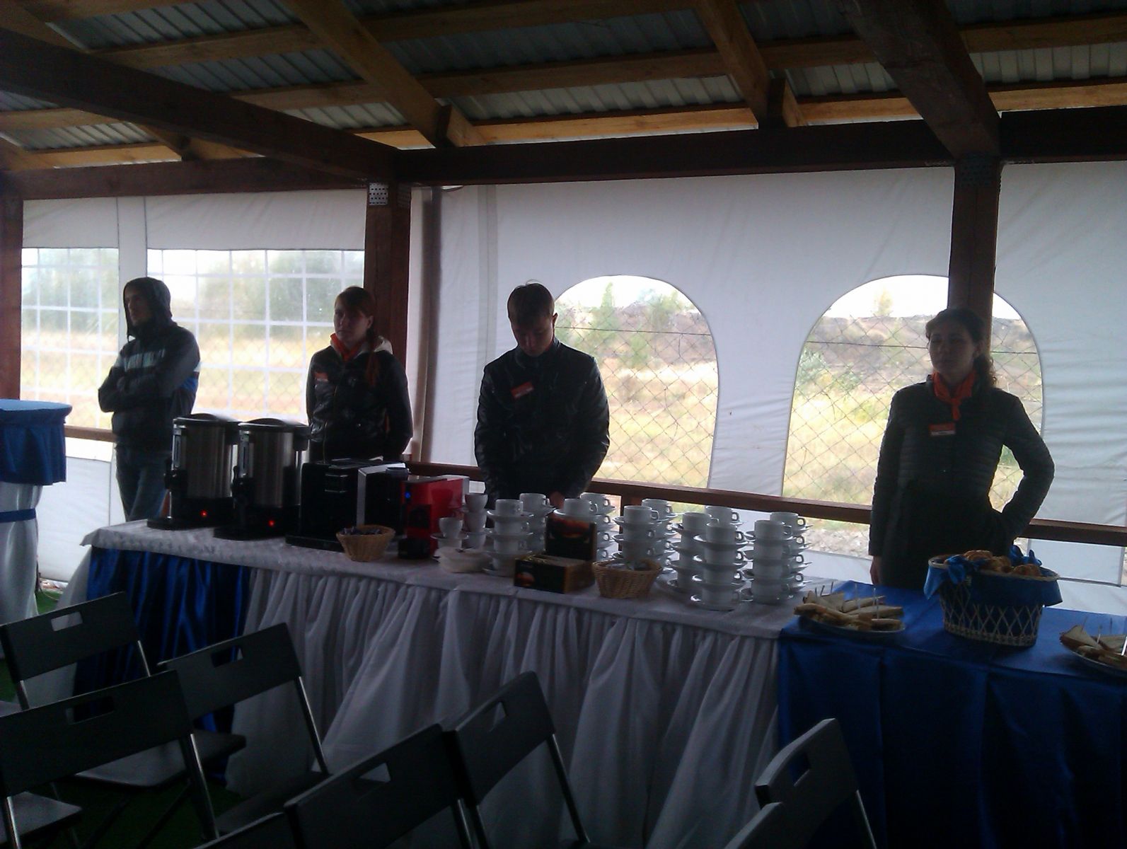 Шел дождь. Погода благоприятствовала тест-драйву летних шин Сordiant Sport 3. Согревались чаем и горячим кофе с круассанами, были и те, кто согревался танцами под ритмичную музыку.
