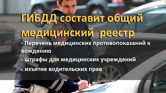 ГИБДД планирует проверять водителей по единому медицинскому реестру, в котором указаны медицинские противопоказания для водителей с целью останавливать действие водительских прав.