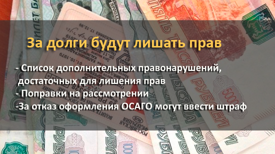 С 15 января 2016 г. вводится процедура лишения водительских прав за долги. О других планируемых нововведениях читайте в конце статьи.